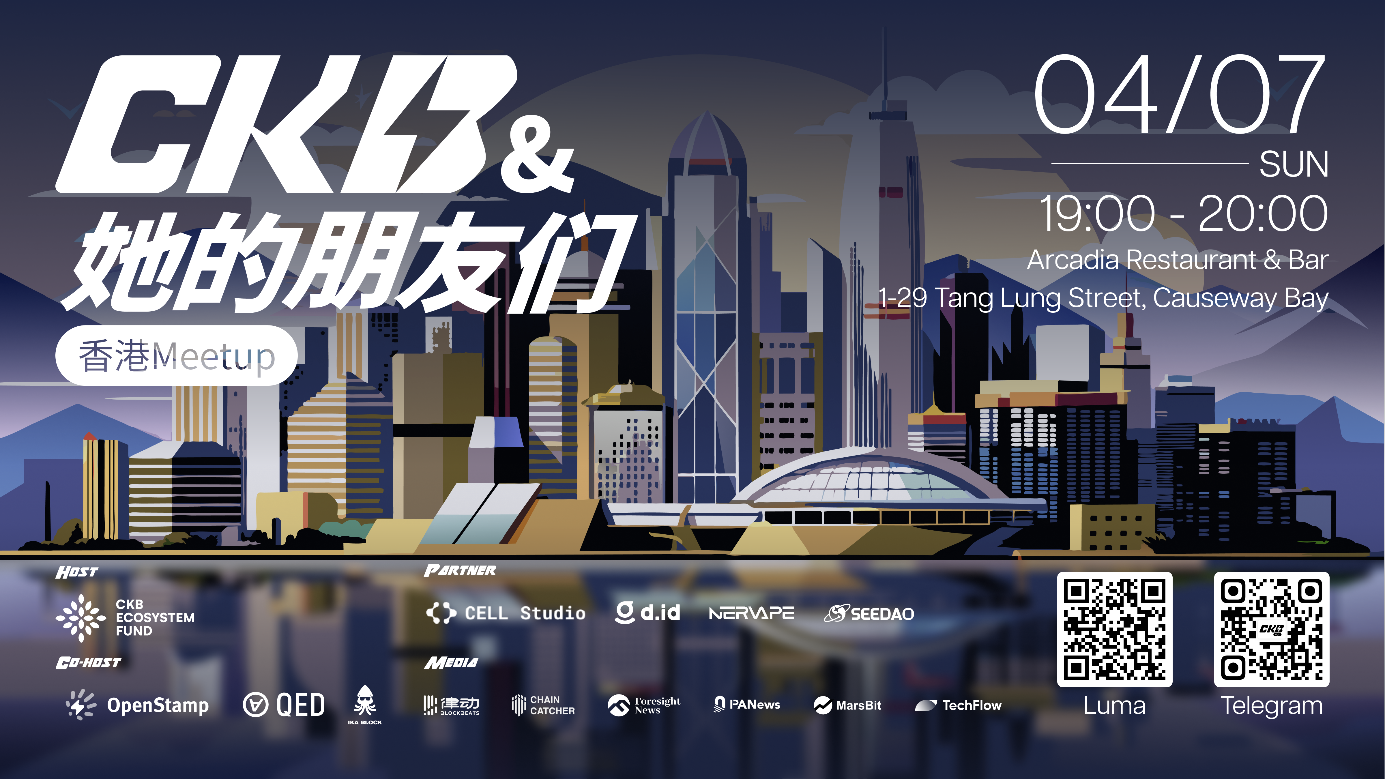 This event is hosted by the CKB Eco Fund, co-hosted by OpenStamp and QED Protocol, and supported by Cell Studio, d.id, NERVAPE, SeeDAO, Rebase, and other ecological projects. Welcome all community friends to join the party and chat together.