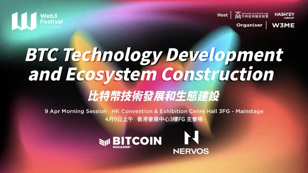 On April 9, CKB and BitcoinMagazine, as Co-Organizers, will host the 'Bitcoin Technology Development and Ecosystem Construction' forum at the main venue (morning) and sub-venue three (afternoon) of the 2024 Hong Kong Web3 Festival, inviting global industry elites to discuss the current development and future trends of the Bitcoin ecosystem and encrypted assets.